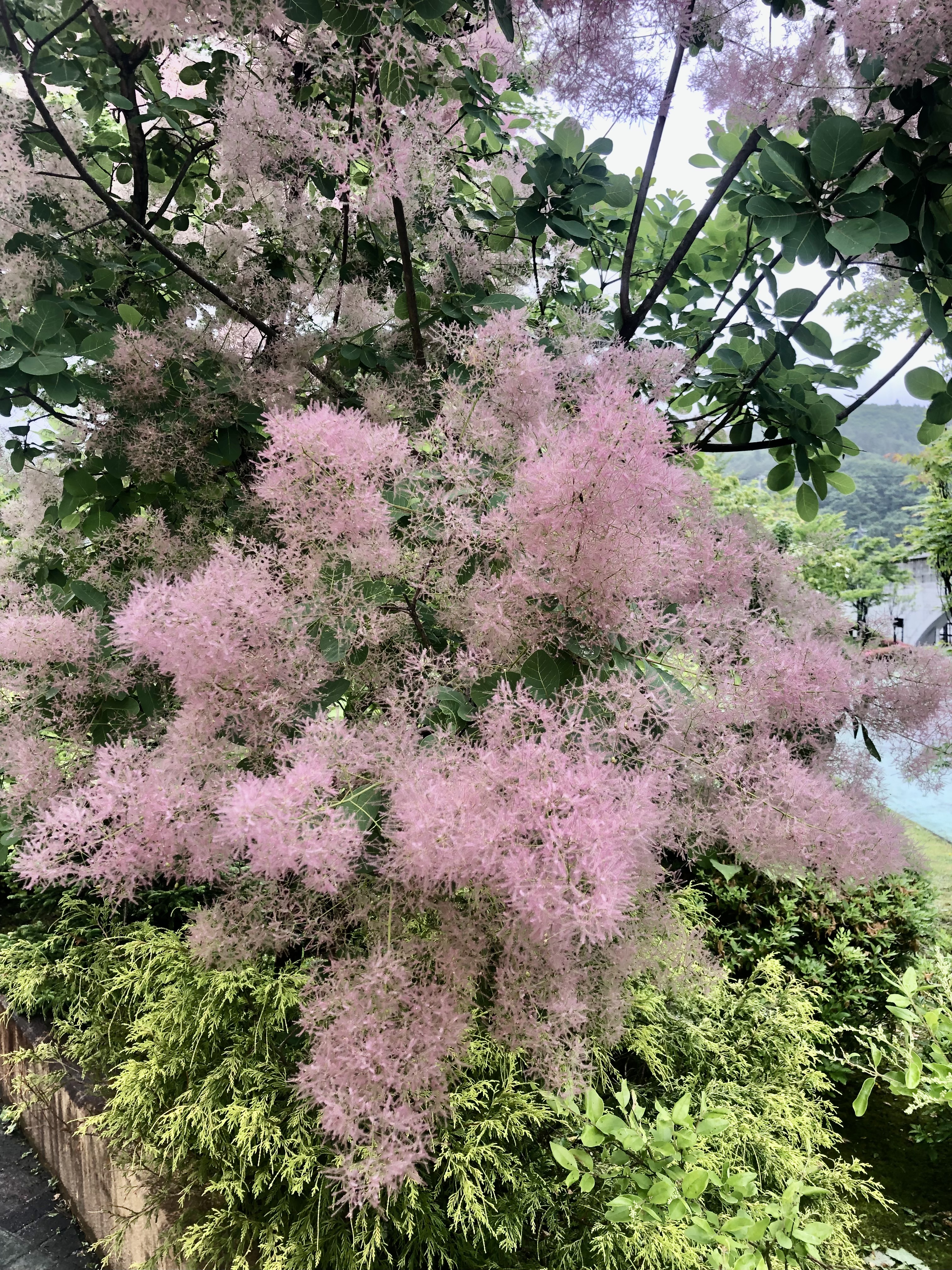 フワフワのスモークツリー 2025/06/17 みなさん、おはようございます\(^o^)/ 今、森の丘エリアと渓谷エリアで、スモークツリーがフワフワの花を咲かせてます(*^_^*) 色も白とピンクの2種類が咲いてますよ(*^_^*) スモークツリー①